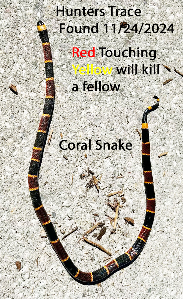 I was informed that a coral snake bit a dog and killed the dog, so be aware of snakes. Also can anyone email me their thoughts on switching to the Metro Net Fiber Opic Internet Cable and what TV company they went with. Robin Corsiglia : [email protected] ************************************************************************************ Update: Amount Due: $60 per year per lot. Make Payable To: Hunters Trace HOA Send Check to : Mr. Tim Bell, Treasurer 860 NE 52nd Ave, Ocala, FL 34470 Name ___________________________________________________ Phone Number ___________________________________________ Address _________________________________________________ E-Mail ___________________________________________________ ^^^^^^^^^^^^^^^^^^^^^^^^^^^^^^^^^^^^^^^^^^^^^^^^^^^^^^^^^^^^^^^^^^^^^^^^^^^^^^^^^^^^^^^^^^^^^^^^^^^^^^^^^^^^^^^^ Be on the lookout for these Coral Snakes.